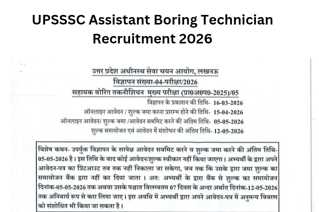 UPSSSC Assistant Boring Technician Recruitment 2026 | Vacancy, Online Form, Eligibility, Salary, Syllabus & Exam Date